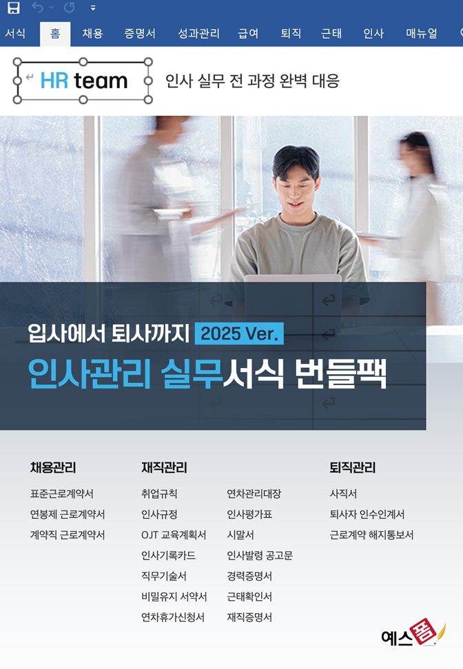 2025년 달라진 노동법과 근로기준법에 맞춰 인사 서류를 일일이 업데이트하고, 다양한 인사 관련 문서들을 개별적으로 찾아 관리하는 것은 인사담당자에게 큰 부담입니다. 갑자기 시말서 양식이 필요하거나 인사평가 시즌이 다가올 때마다 적절한 양식을 찾느라 헤매는 경우도 많죠. 오늘은 이런 고민을 단번에 해결할 수 있는 예스폼의 인사관리 실무서식 번들팩에 대해 소개해드리겠습니다. 인사 업무의 효율성을 높이고 법적 리스크까지 줄여주는 이 필수 도구, 함께 자세히 살펴볼까요?