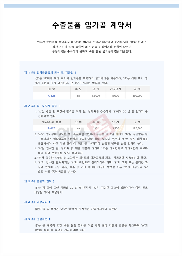 수출물품 임가공계약서