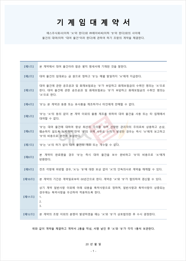 일상 속에서 혹은 근무를 하다 보면 업무에 필요한 기계, 사무실 등을 구매하는 것보다 임대하는 것이 좀 더 경제적이거나 효율적일 수 있습니다. 그렇지만 임대계약서는 어렵고 복잡하기에 어떻게 준비해야 할지 어떤 조항을 넣어야 하는지, 무엇을 확인해야 하는지 막막하실 수 있는데요. 오늘은 그런 분을 위해 임대계약서에서 반드시 확인해야 할 중요한 항목들과 함께 예스폼에 업데이트된 임대계약서 예시가 포함된 양식 6가지를 소개해드리려고 합니다. 우리의 일상과 업무에 중요한 계약서이니, 이번에 준비한 포스팅으로 완벽한 임대계약서를 준비해 보시기 바랍니다.