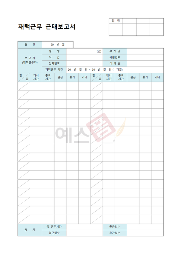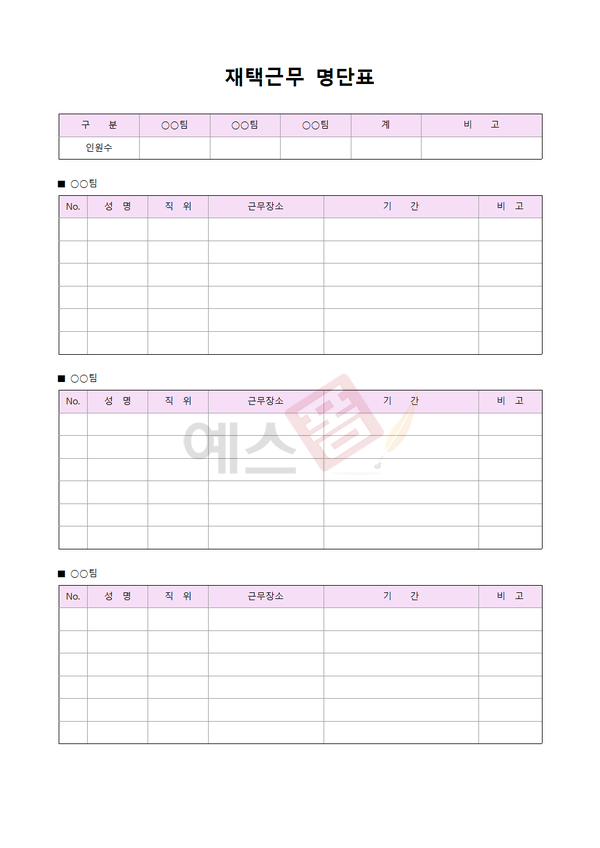 | 재택근무 신청서 | 재택근무 명단표 | 재택근무 근태보고서 |