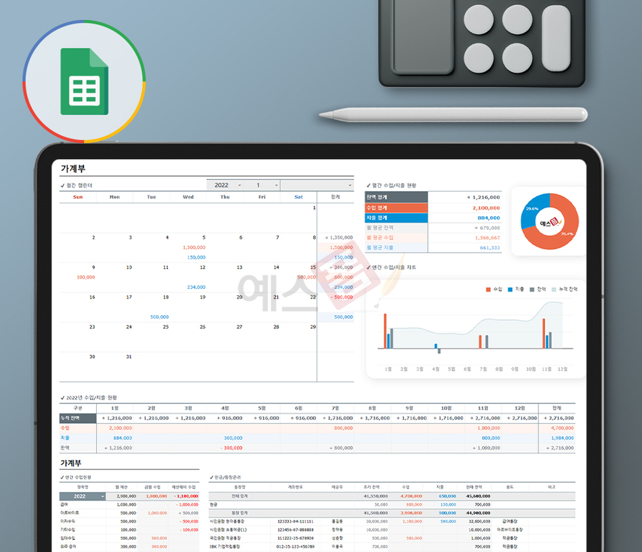가계부 관리대장 구글 스프레드시트 - 예스폼 엑셀서식