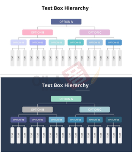| 계층구조형 다이어그램 | 텍스트 박스 계층구조 다이어그램 | 텍스트 박스 계층구조 다이어그램(2) |
