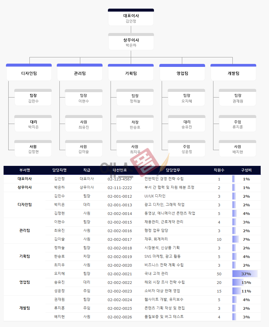 [2025년] 담당자별 기업조직도 - 예스폼 엑셀서식