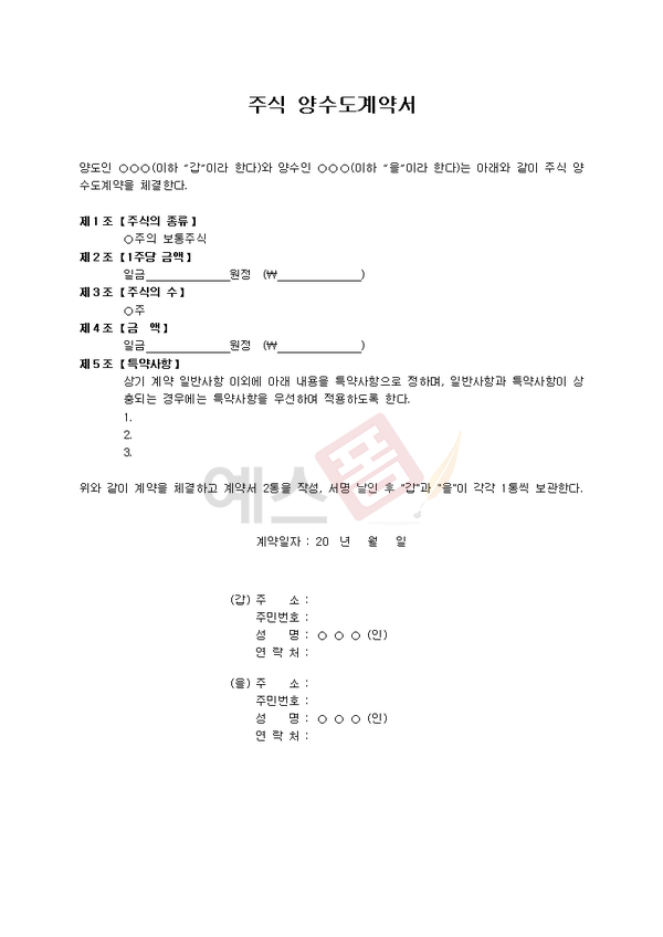 주식양도양수계약서 양식