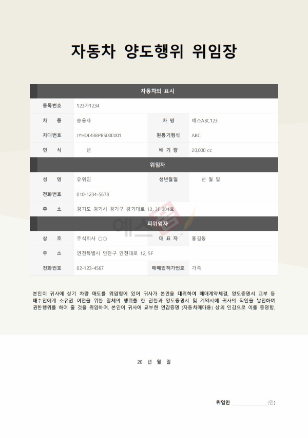 ▼▼예스폼 자동차 양도행위 위임장 바로가기▼▼