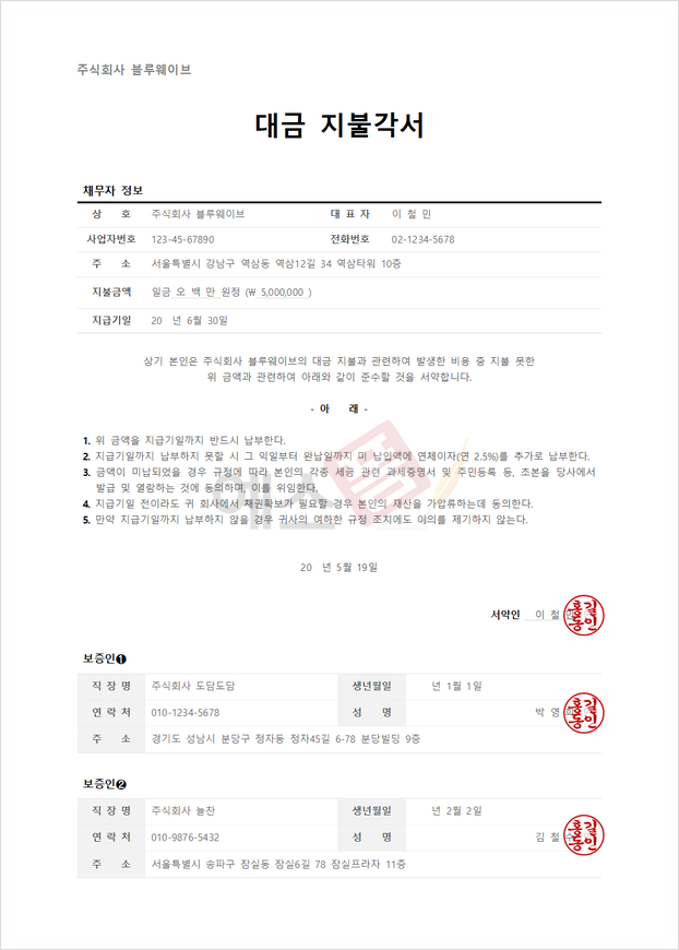지불각서 효력 작성방법 알아보기 + 지불각서 양식 추천 (연대보증인, 차용금, 대금)