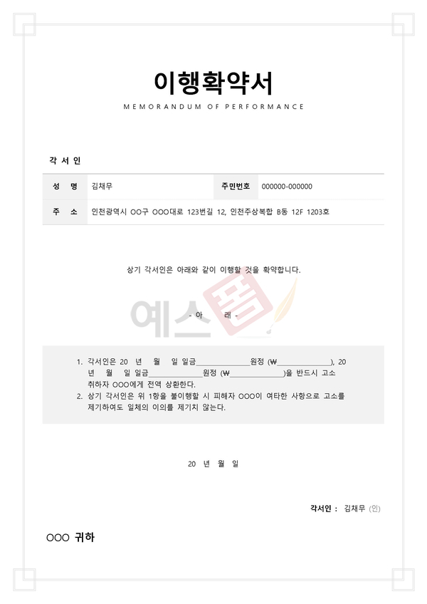 지불각서 | 이행각서 | 이행확약서 |