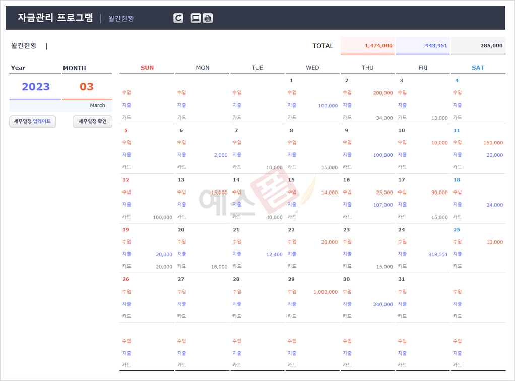 예스폼 NEW 자금 관리 Program