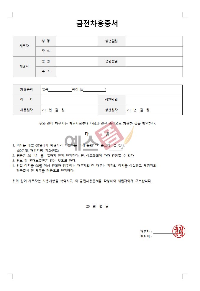 4️⃣ [2025년] 금전차용증서 🆕최신