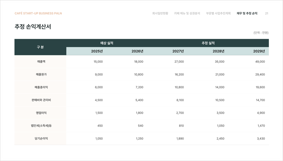 💰 재무 및 추정 손익