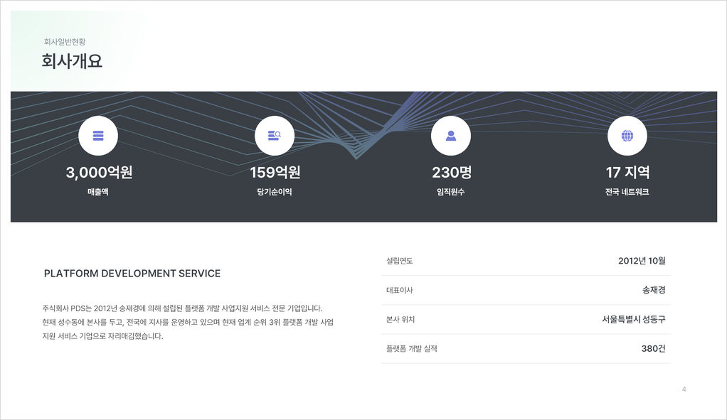 소개드린 플랫폼 개발 사업지원 서비스업 회사소개서는