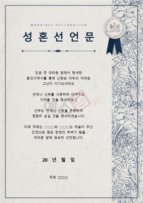 성혼선언문 샘플 양식 더보기