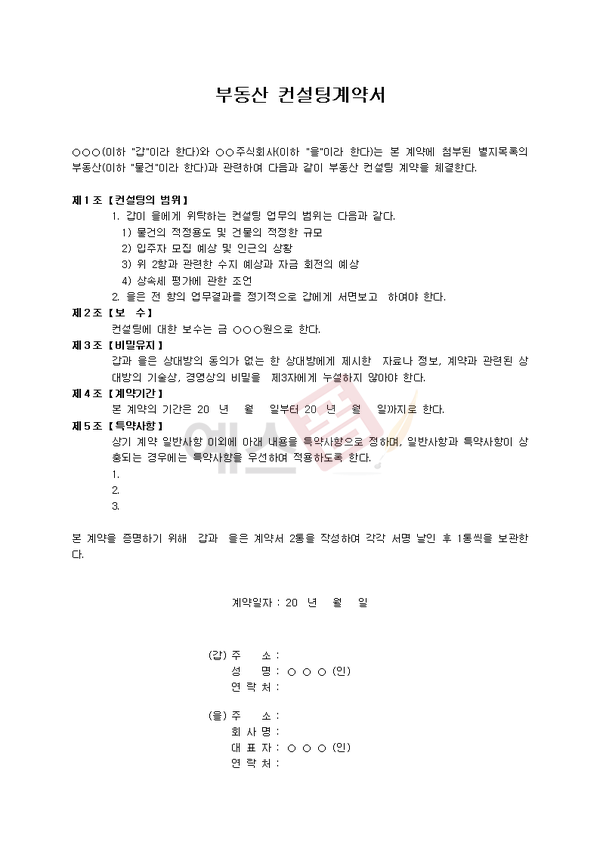 부동산 컨설팅 계약서 작성요령