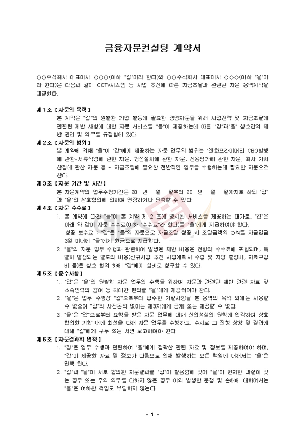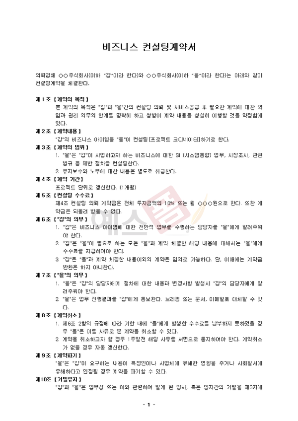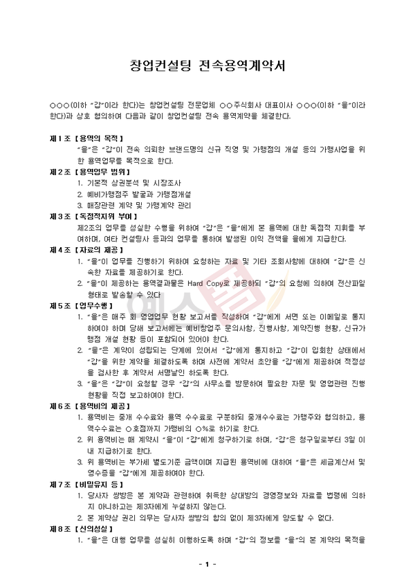 비즈니스 컨설팅계약서 | 금융자문 컨설팅계약서 | 창업컨설팅 전속 용역계약서 |