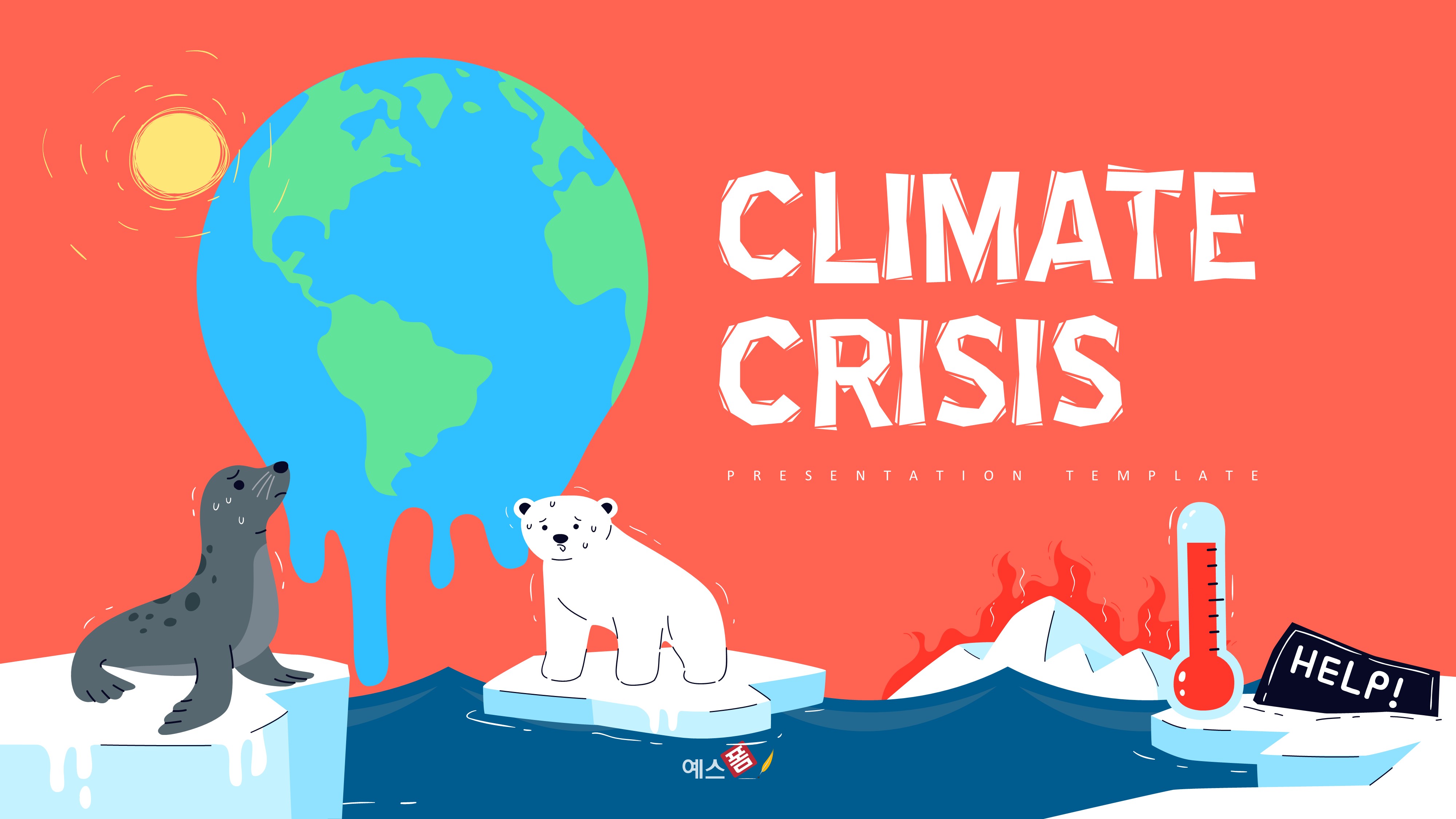 기후위기를 주제로 제작된 파워포인트 배경 템플릿입니다. 기후 변화 관련 일러스트 이미지가 포함되어 있어 활용하기 좋은 템플릿입니다. 6장의 슬라이드로 표지, 목차, 내지, 종지로 서비스되고 있습니다.