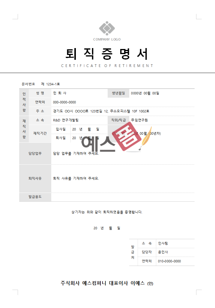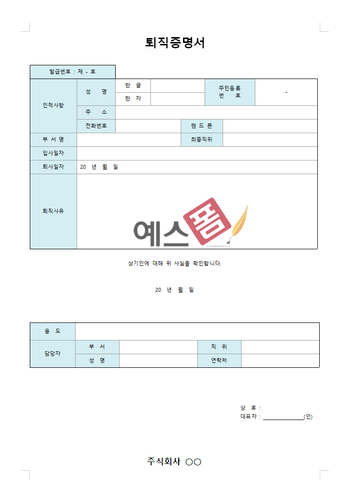 5. 예스폼 퇴직증명서 양식 모음