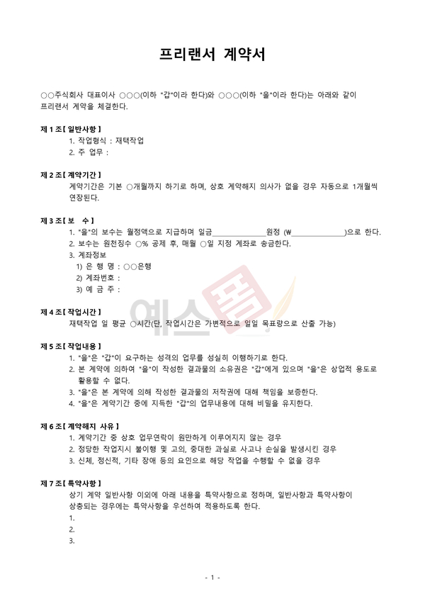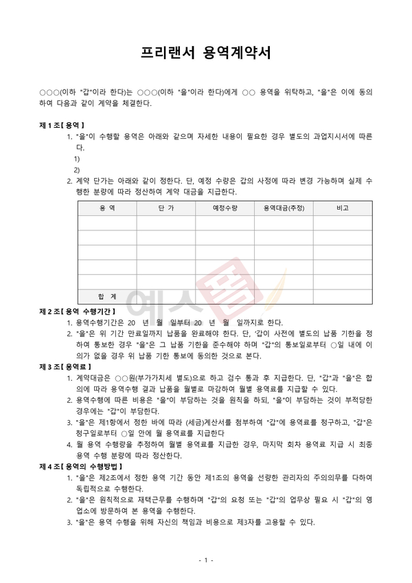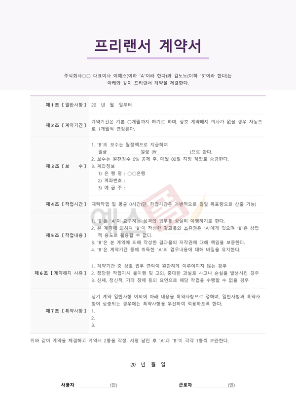 프리랜서 계약서 | 프리랜서 근로계약서 | 프리랜서 용역계약서 |