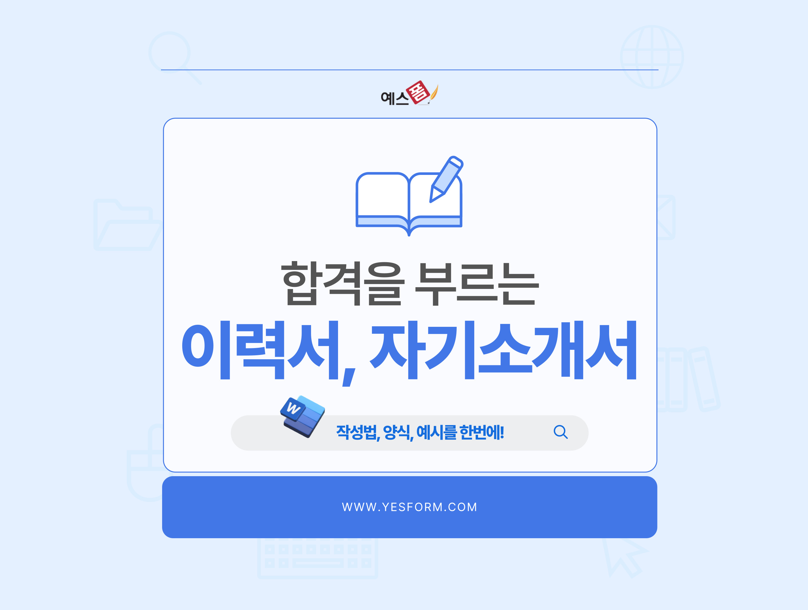오늘은 예스폼에서 이력서, 자기소개서 양식 폼 및 작성법에 대해서 알아보도록 하겠습니다.
