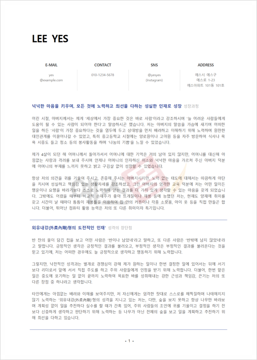 AI의 도움을 받아 시간을 절약하되 자신만의 경험과 개성을 담아 독창성을 높이는 것이 핵심이라는 점 꼭 명심하시기 바랍니다. 예스폼에서는 자기소개서 성장과정 예시 지원 동기 예시 입사 후 포부 예시 성격의 장단점 예시 샘플이 작성되어 있는 자기소개서 양식을 다양하게 제공하고 있으니 참고해 보시기 바랍니다.