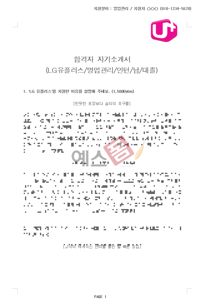 합격자 자기소개서(LG유플러스/B2C 영업관리) - 인턴, 남, 대졸 - 예스폼 이력서·자기소개서
