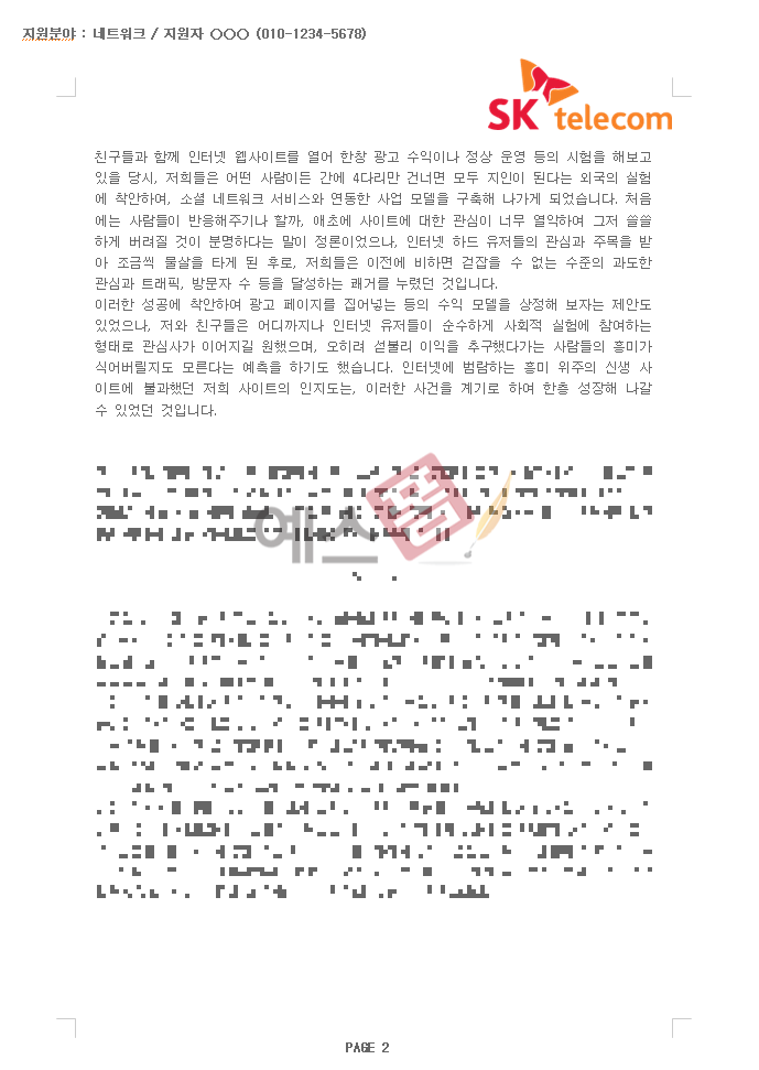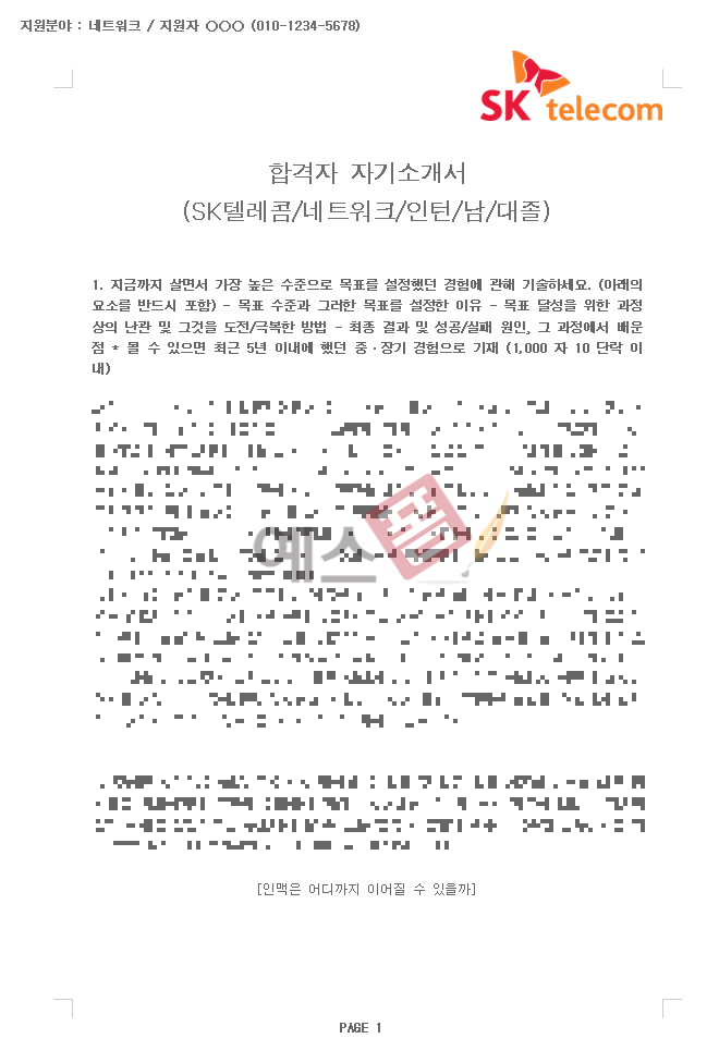 📱 합격자 자기소개서(SK텔레콤/네트워크) - 인턴, 남, 대졸