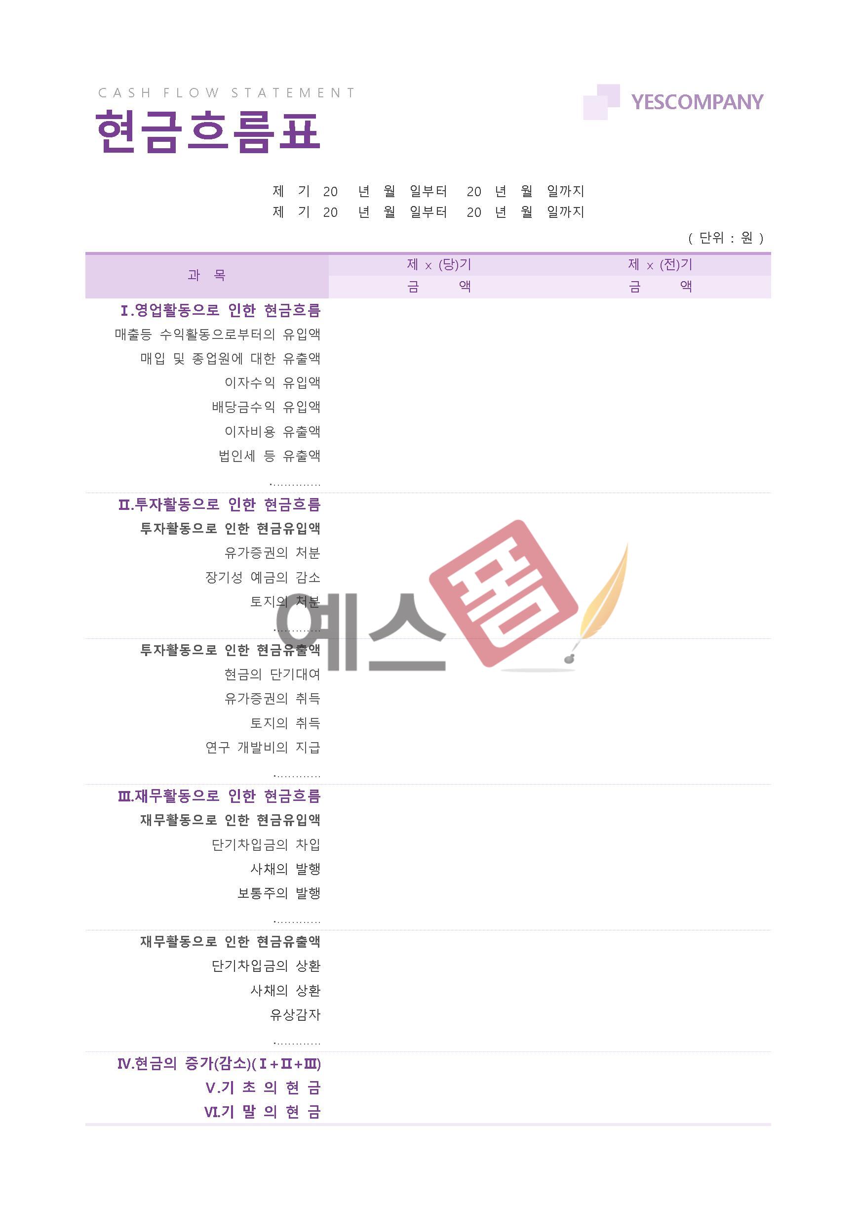 오늘은 예스폼에서 현금흐름표 작성방법 및 양식에 대해서 알아보도록 하겠습니다.