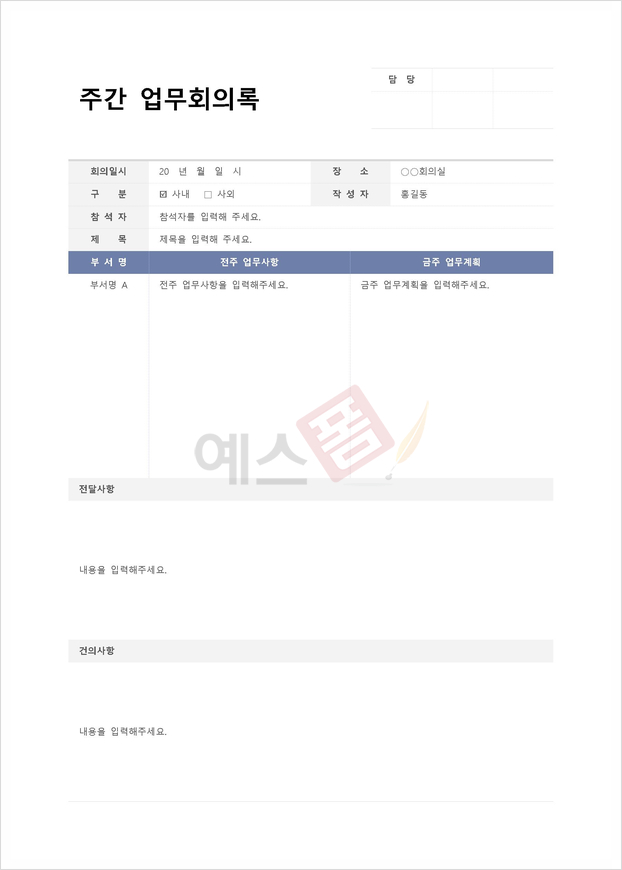 | 이사회 회의록 | 영업미팅 회의록 | 아이디어 회의록 |