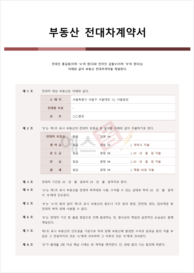 🏠 전세계약 연장 가이드 및 부동산 전대차 계약서 양식 추천, 더이상 전세계약 만기로 스트레스 받지 마세요!