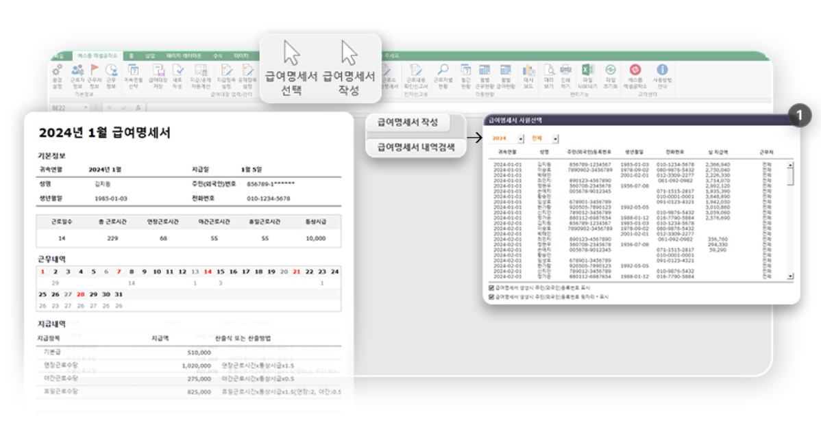 👉 급여대장 자동작성 & 내역 저장 및 검색