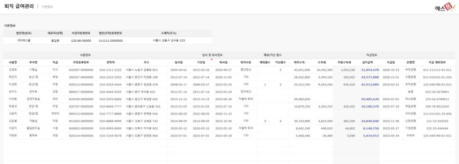 ▼▼예스폼 퇴직 급여관리 프로그램 보러가기▼▼