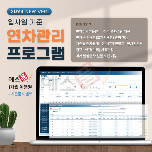 오늘은 예스폼에서 연차 관리 엑셀 프로그램으로 연차수당 · 발생일수 · 연차 이월 계산에 대해서 알아보도록 하겠습니다.