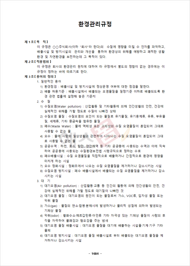 환경상의 위해를 예방하고 쾌적한 생활환경 및 자연환경을 보전하기 위해 마련된 환경관리규정입니다.