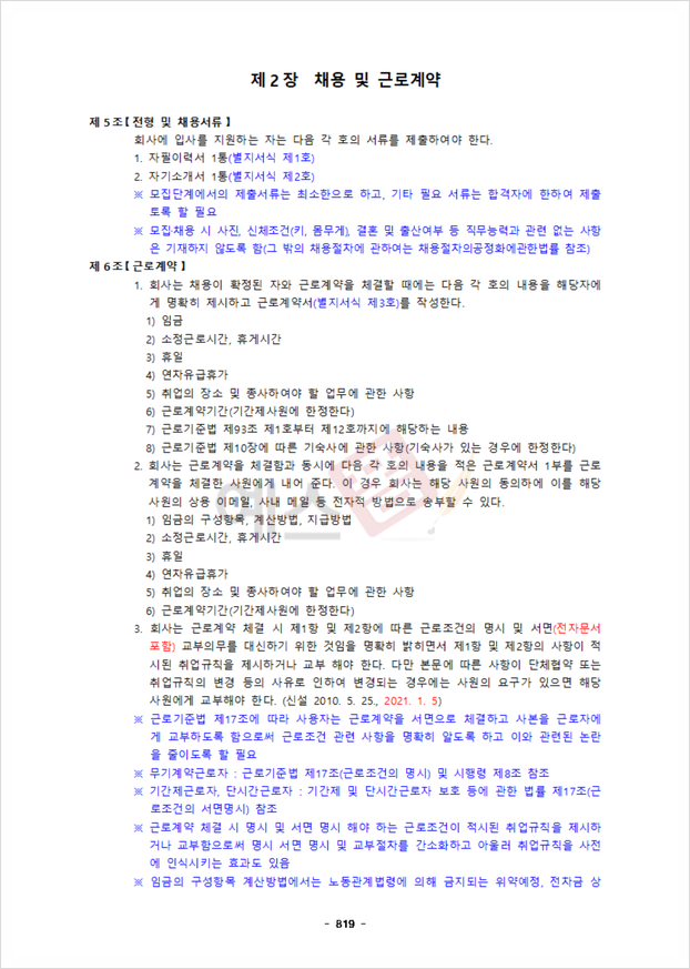 실제 개정된 각종 법 규정과는 다소 차이가 날 수 있어 법과 관련된 조항은 회사 실정에 맞게 수정 작성하시길 바랍니다.
