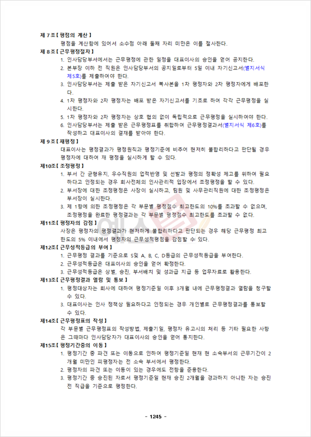 직원의 업적과 능력, 경력 등을 평정함으로써 공정하고 합리적인 인사관리의 기초를 마련한 근무평정 규정입니다.