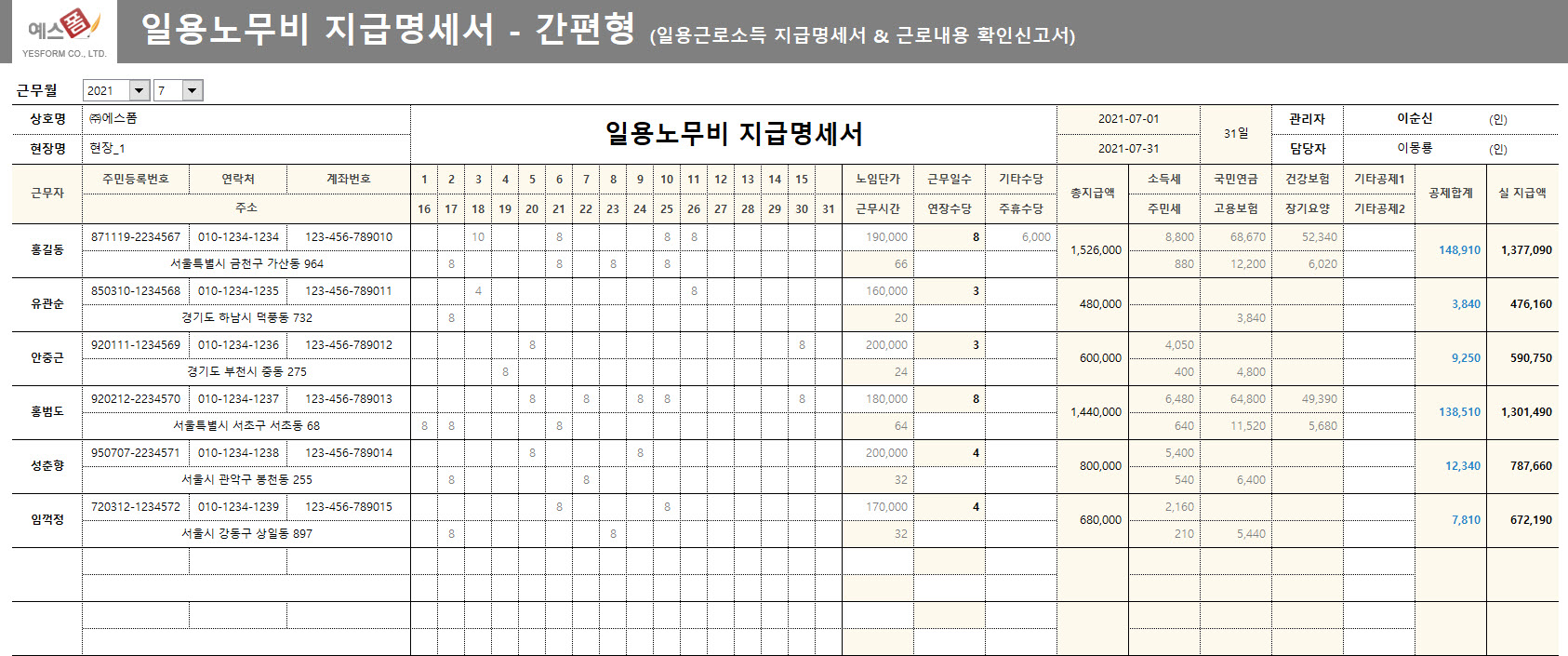 | 연봉계산기 | 일용노무비 지급명세서(간편형) | 건설업 일용노무비 지급명세서(누적형) |