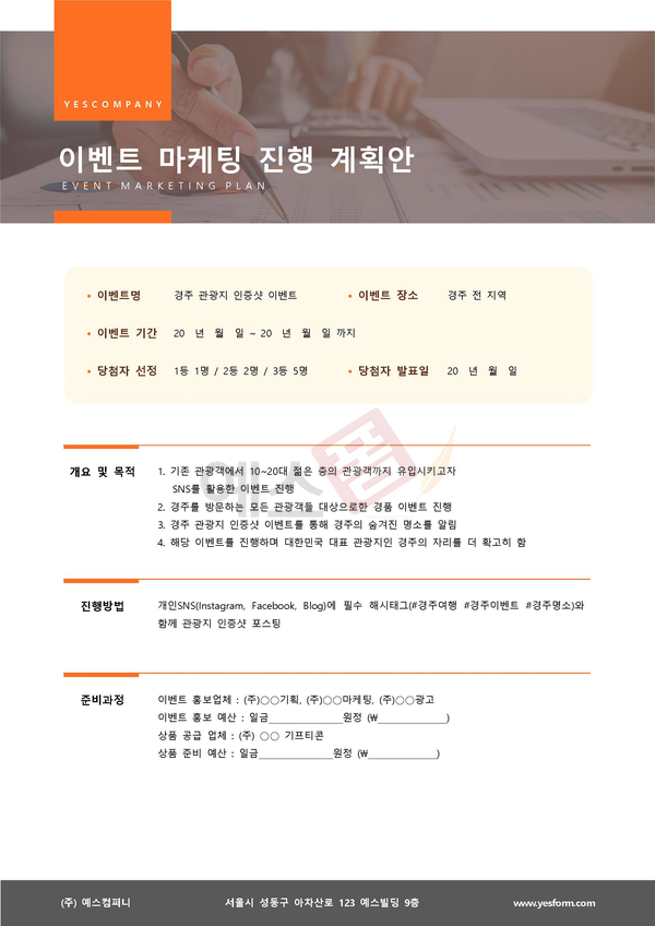 | 이벤트 마케팅 진행 계획안 | 마케팅 결과보고서 | 마케팅 전략 점검표 |