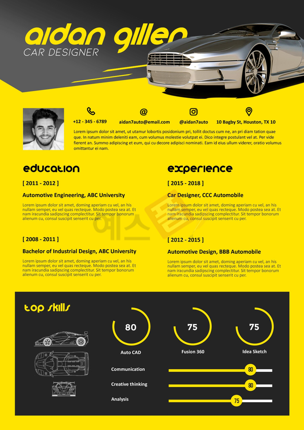 | 영문 디자인 이력서(Car Design) | 영문 디자인 이력서(PM) | 영문 디자인 이력서(Graphic Design) |