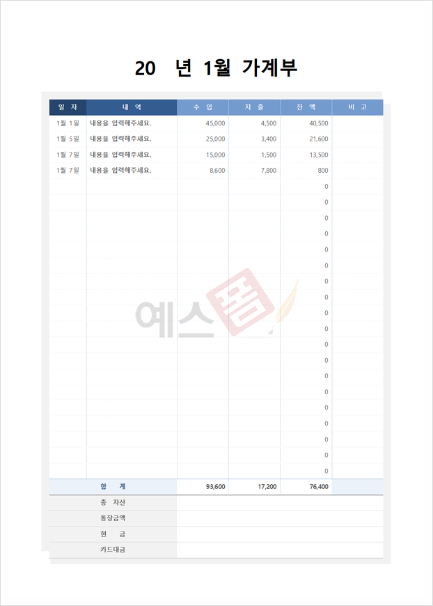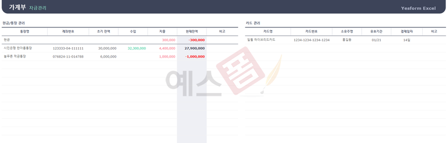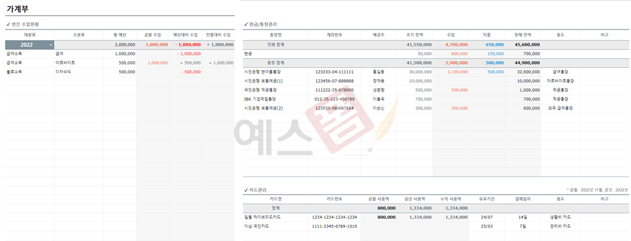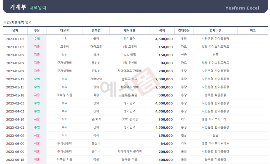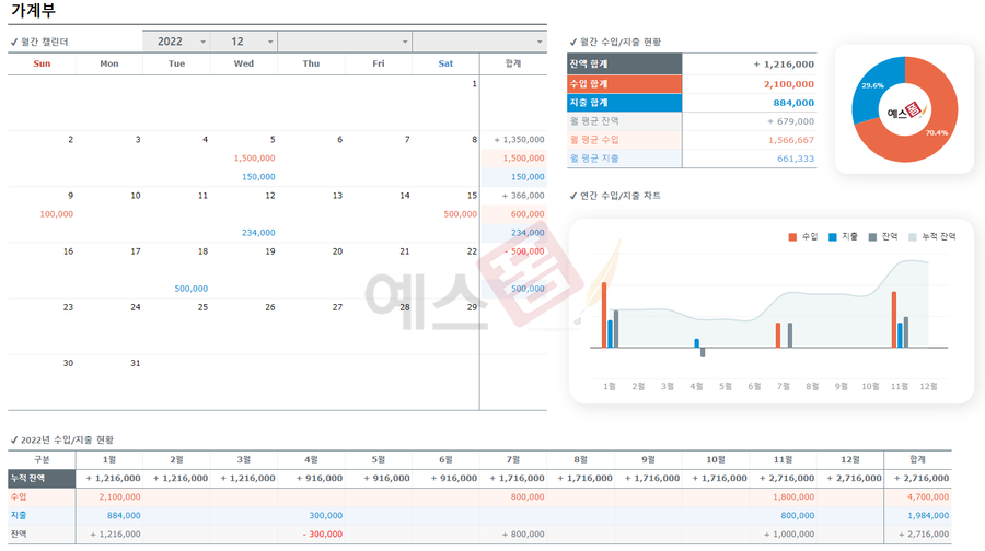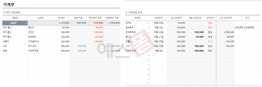 가계부 관리대장 구글 스프레드시트 - 예스폼 엑셀서식