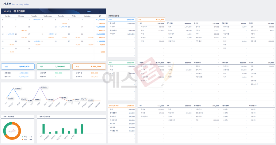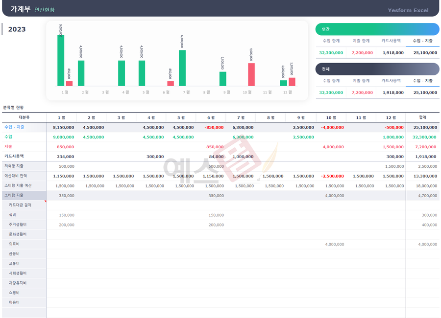가계부_Personal Yearly Budget - 예스폼 엑셀서식