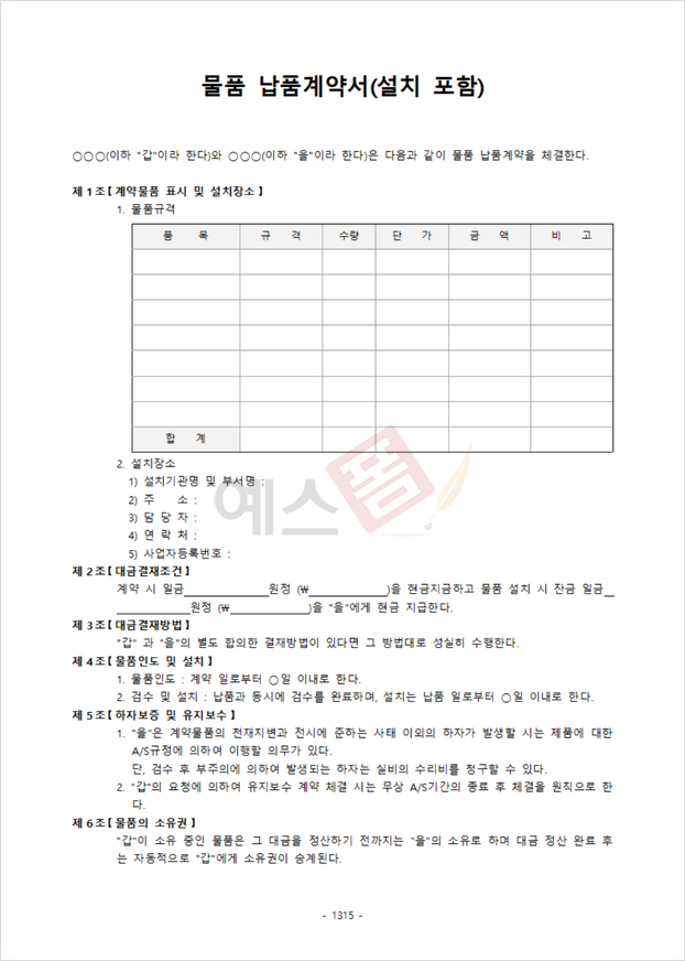 물품 납품과 관련된 청구 주문 방법 및 유의사항에 대해 규정하는 내용을 담은 계약서입니다. 납품 의뢰부터 입고 및 검수를 거쳐 대금의 지급과 구입물품의 이상 발생에 대한 처리에 이르기까지 물품 납품과 관련된 일련의 사항을 포함하고 있습니다.