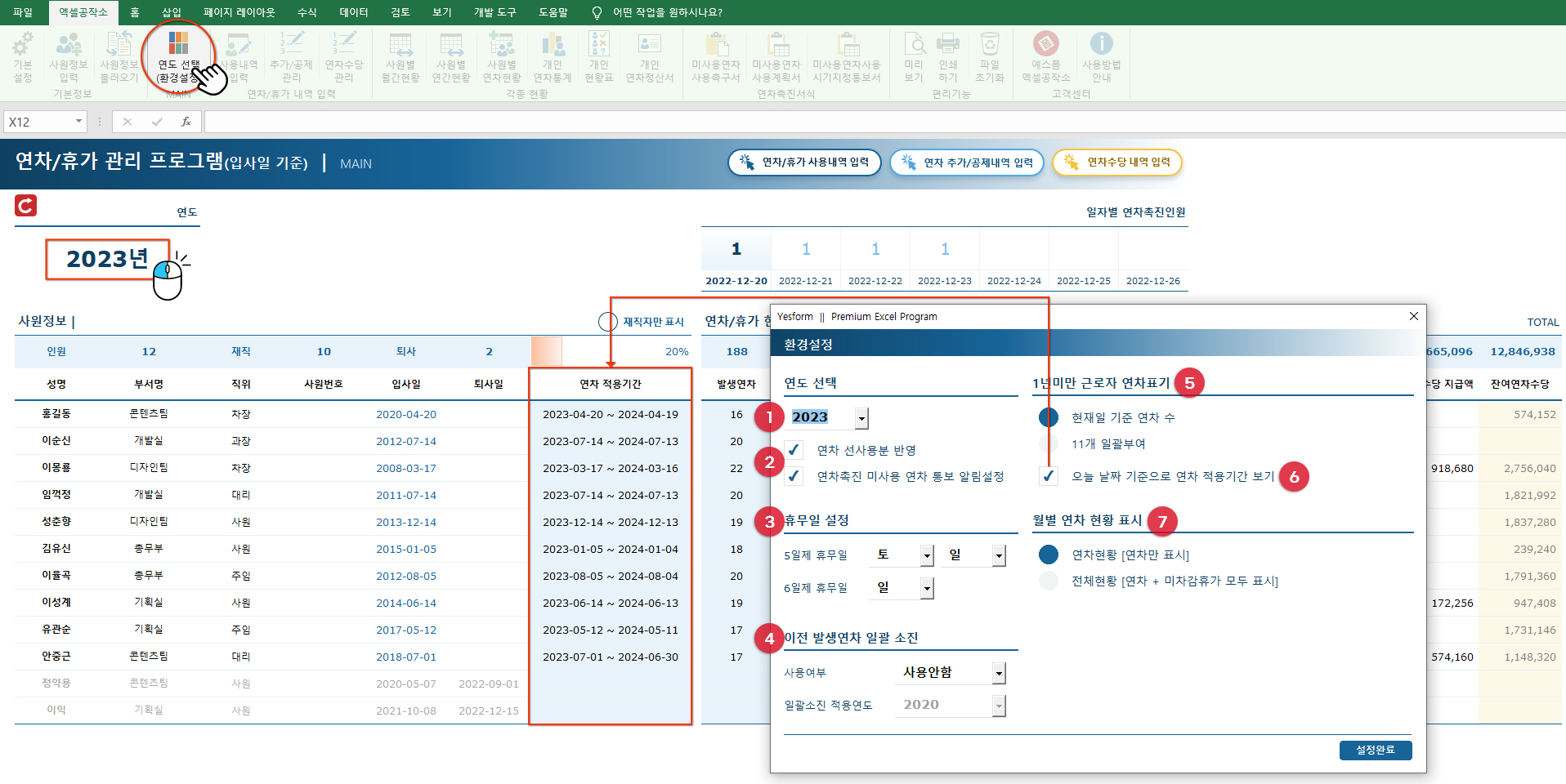 ⑦ 월별 연차 현황 표시를 설정합니다.