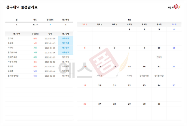 | 학습 일정관리 달력 | [2025년] 이벤트 일정달력 | 청구서 지불계획 달력 |