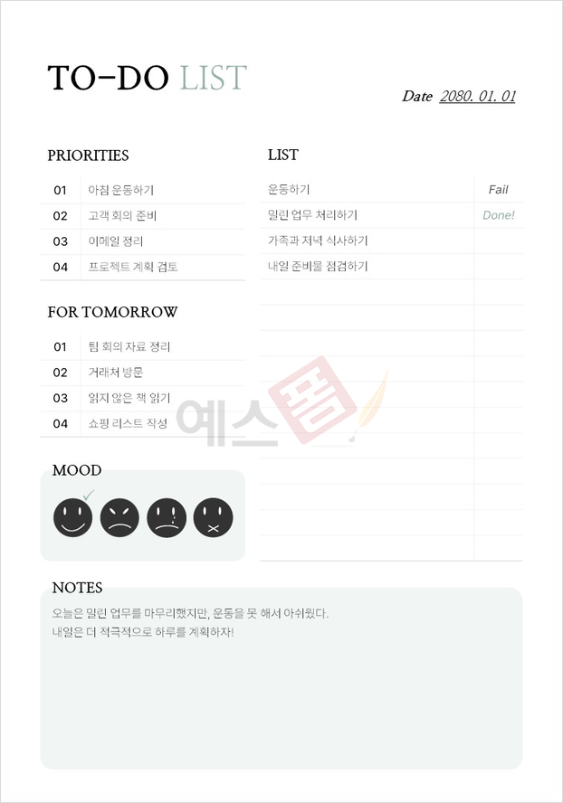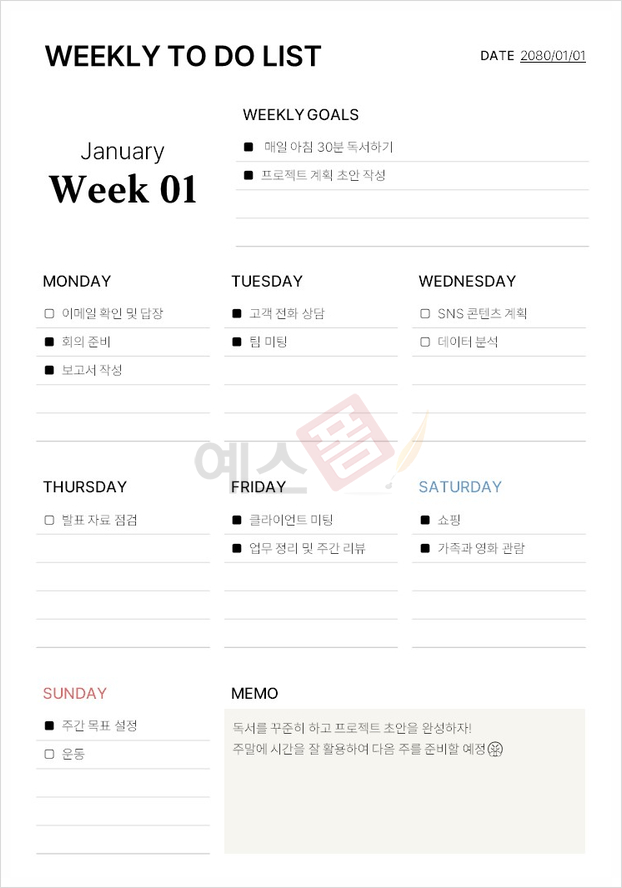 | 업무 우선순위 계획표 | 일간형 투두 리스트 (To-do List) | 주간 업무계획표 |