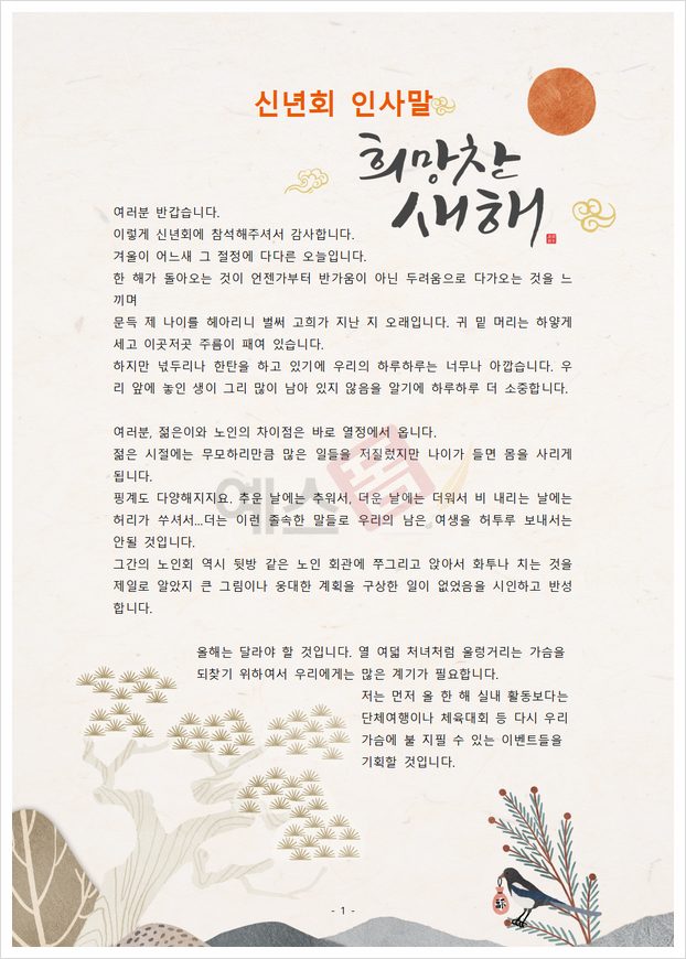 📌 예스폼 [신년사] 노인회장 새해 인사말 (열정, 활동) (2025년)