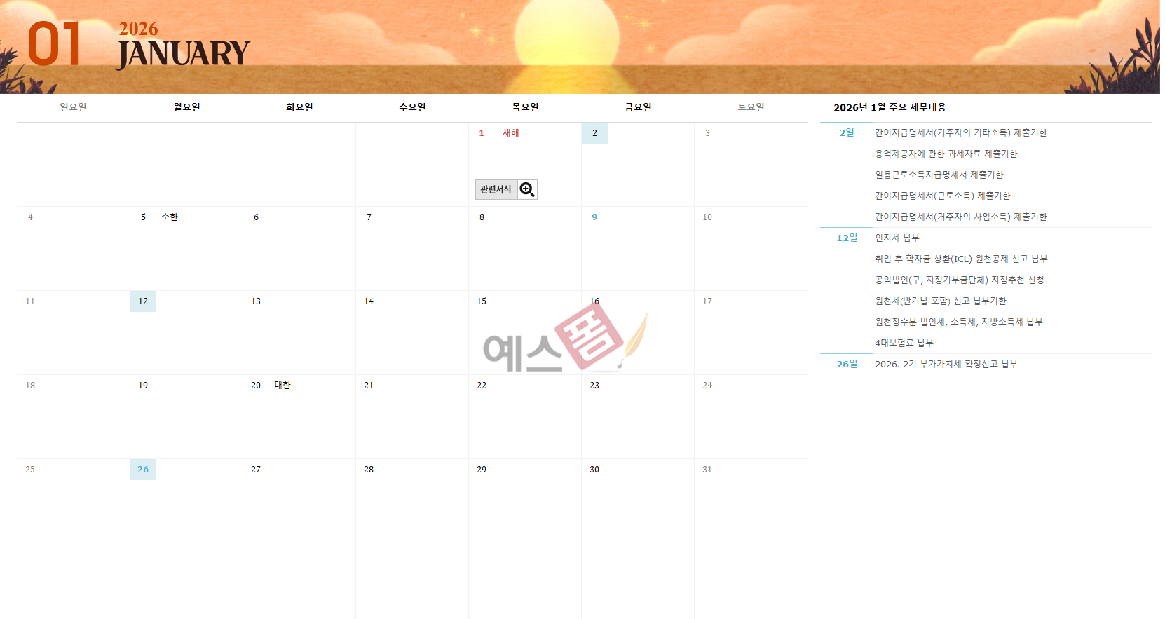 [2026년] 세무달력(일정관리형) - 예스폼 엑셀서식