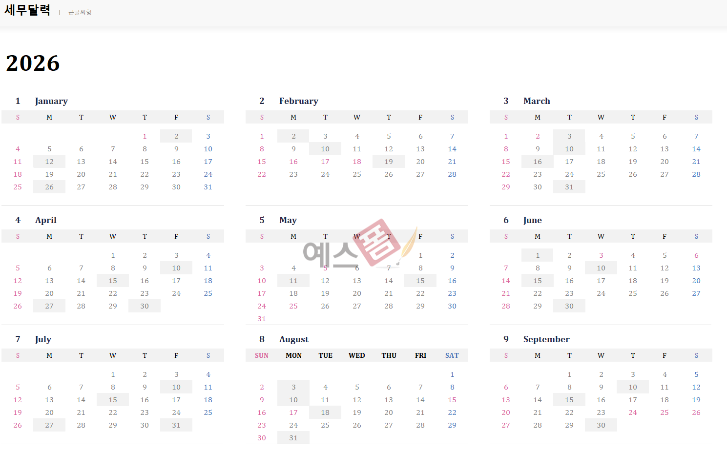 👇 2026년 세무 달력 양식 전체 보러가기 👇