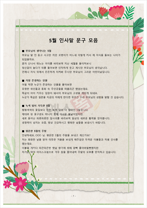 예스폼 5월 봄 인사말(학부모 학부모 어린이날 인사말)