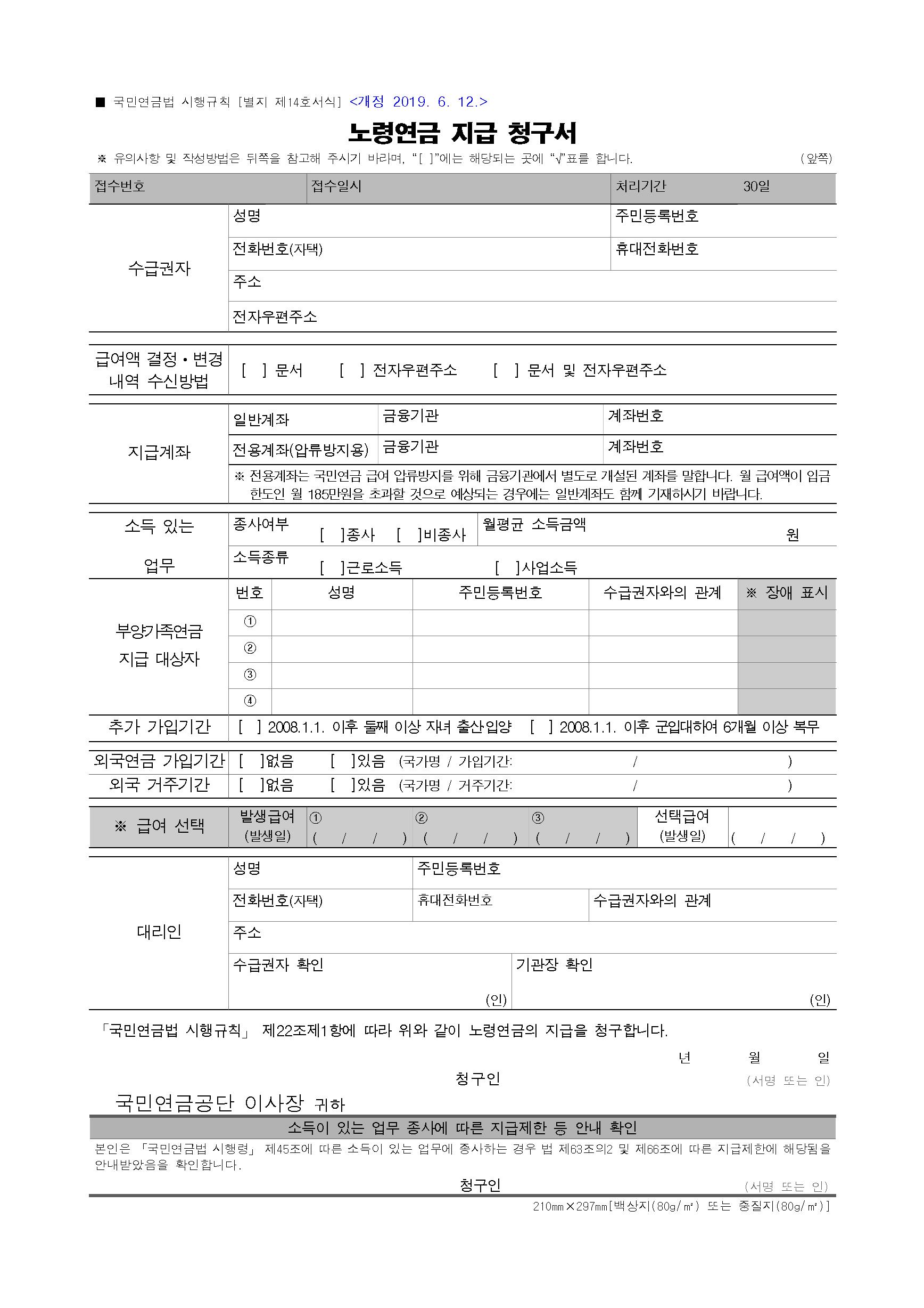 | 2022년 기초연금 사업 안내 | 노령연금 지급 청구서 | 노령연금 지급연기, 재지급 신청서 |