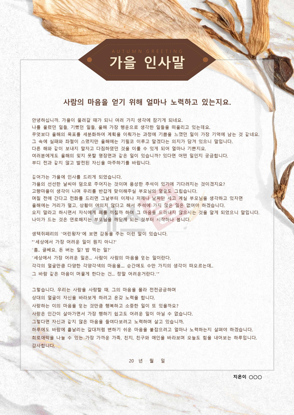 풍요로움이 공존하는 가을날 인사를 드립니다.
