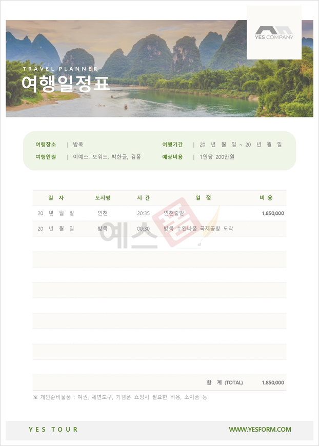 예스폼에서 새롭게 업데이트된 여행계획표 양식으로 대략적인 여름휴가 계획을 세워보세요!